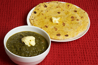 - Pressure cook sarson, palak, green chillies, turmeric powder by adding 1 cup water till 5 whistles.