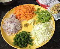 - Add capsicum and cabbage, stir fry for 1 to 2 min.