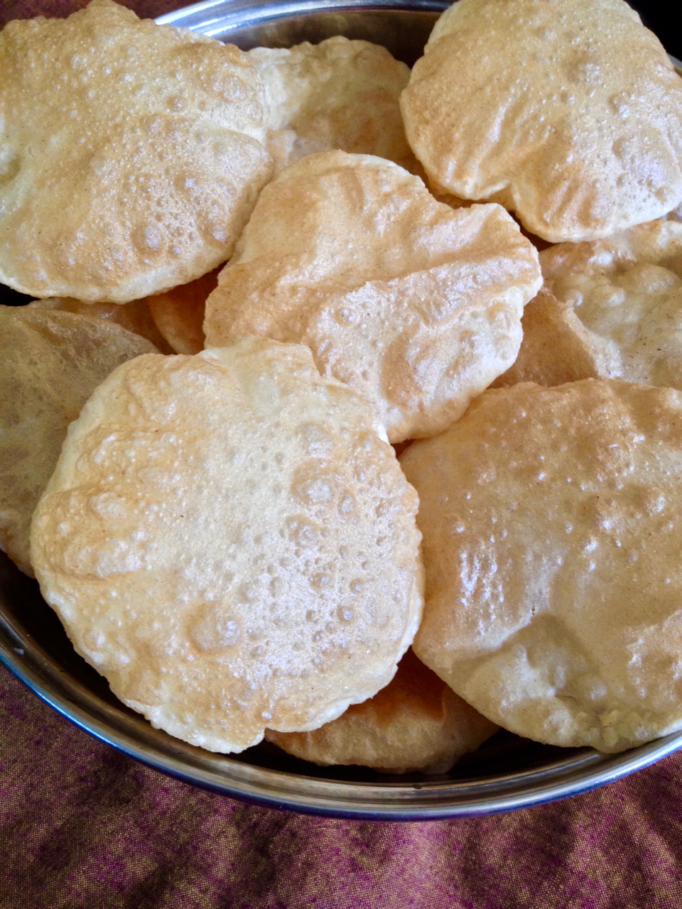 Puri is a deep fried Indian bread. It is served with any curry or it is an accompaniment to the sweet dishes like